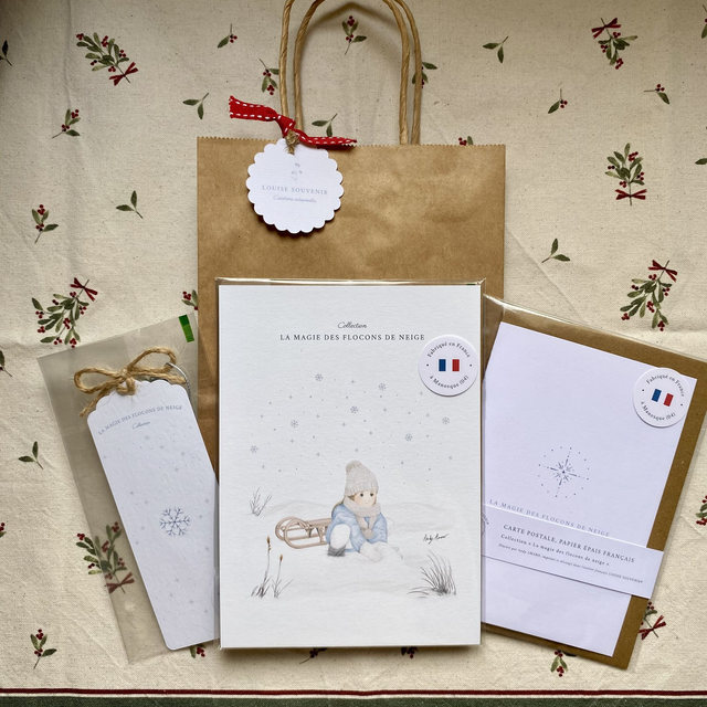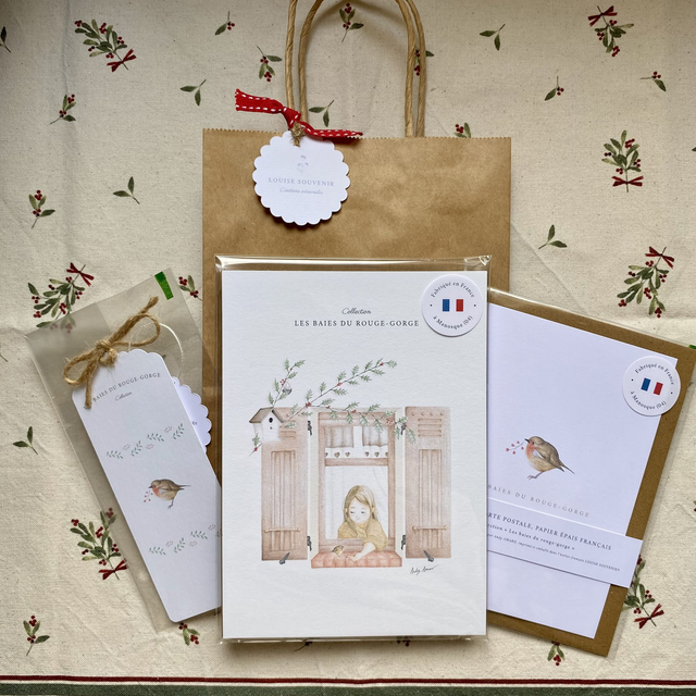 Cette pochette de Noël réunit trois créations artisanales imaginées et réalisées dans l’atelier LOUISE SOUVENIR®, au cœur des Alpes-de-Haute-Provence.